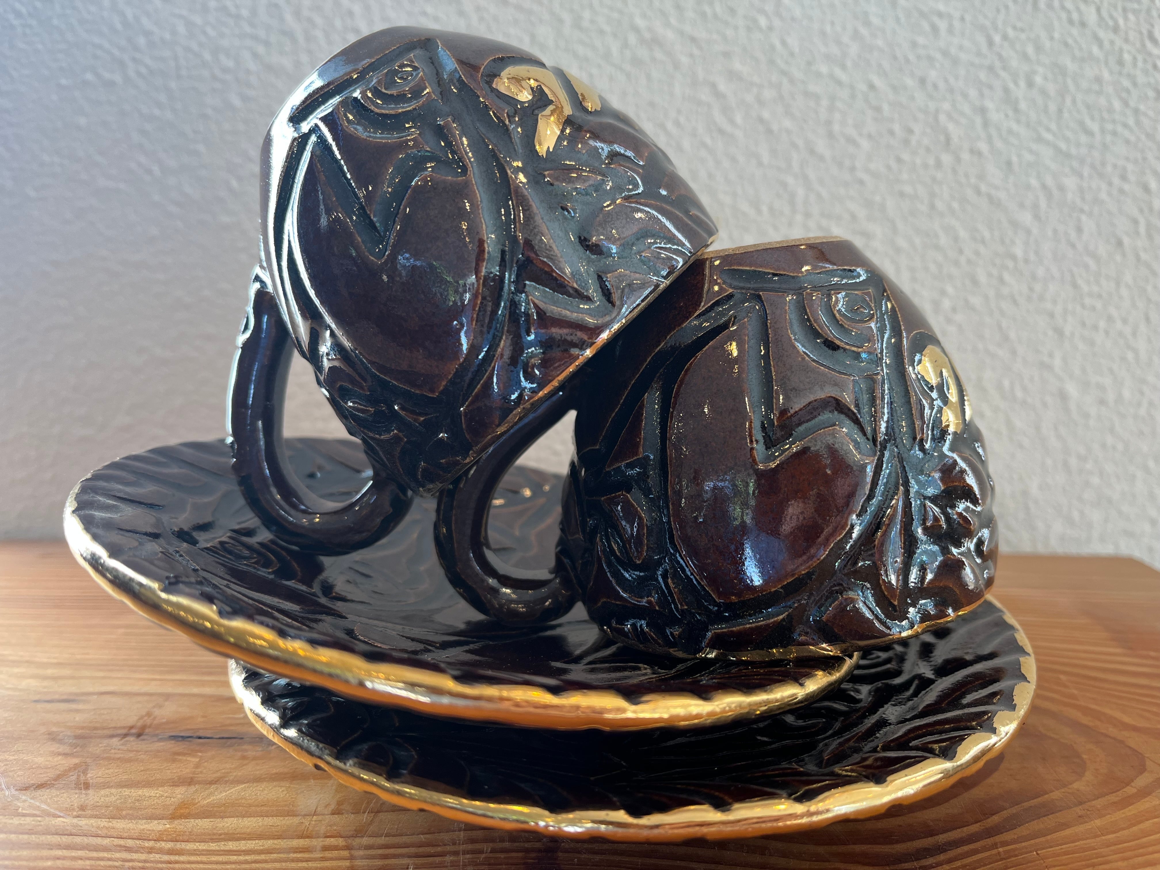 飴釉のコーヒーカップ(皿付)を数量限定で作りました。
