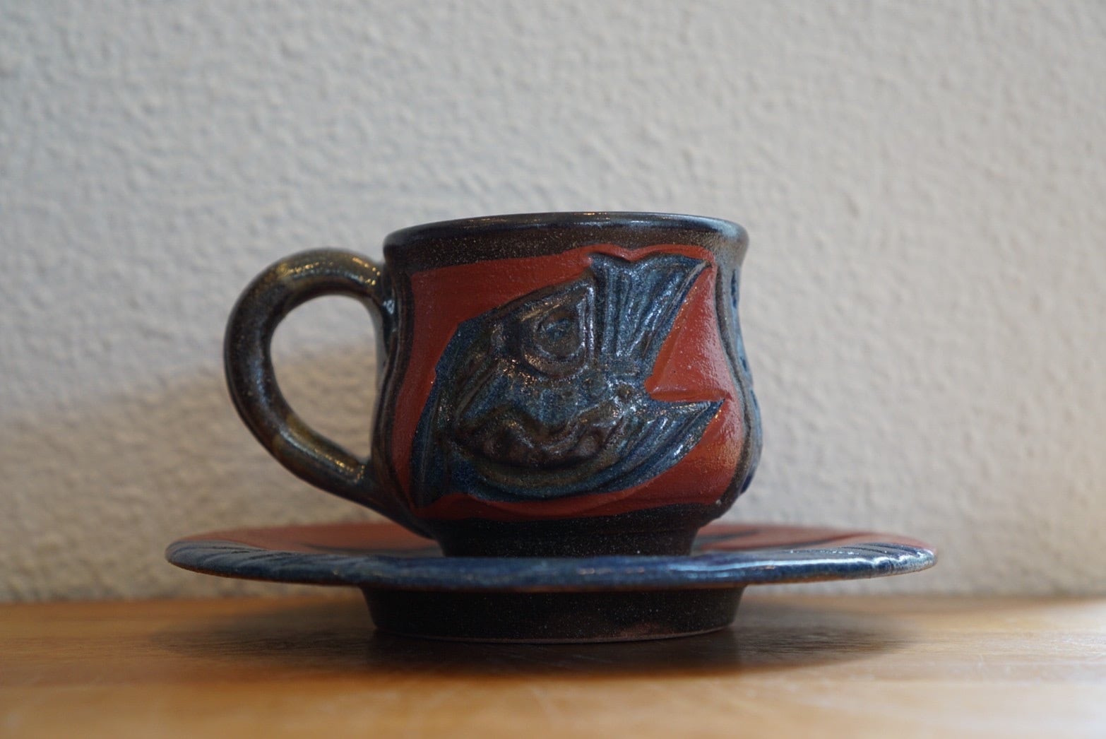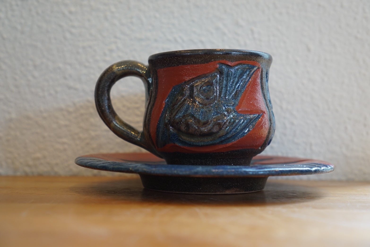 赤絵魚紋 コーヒーカップ波魚(皿付)