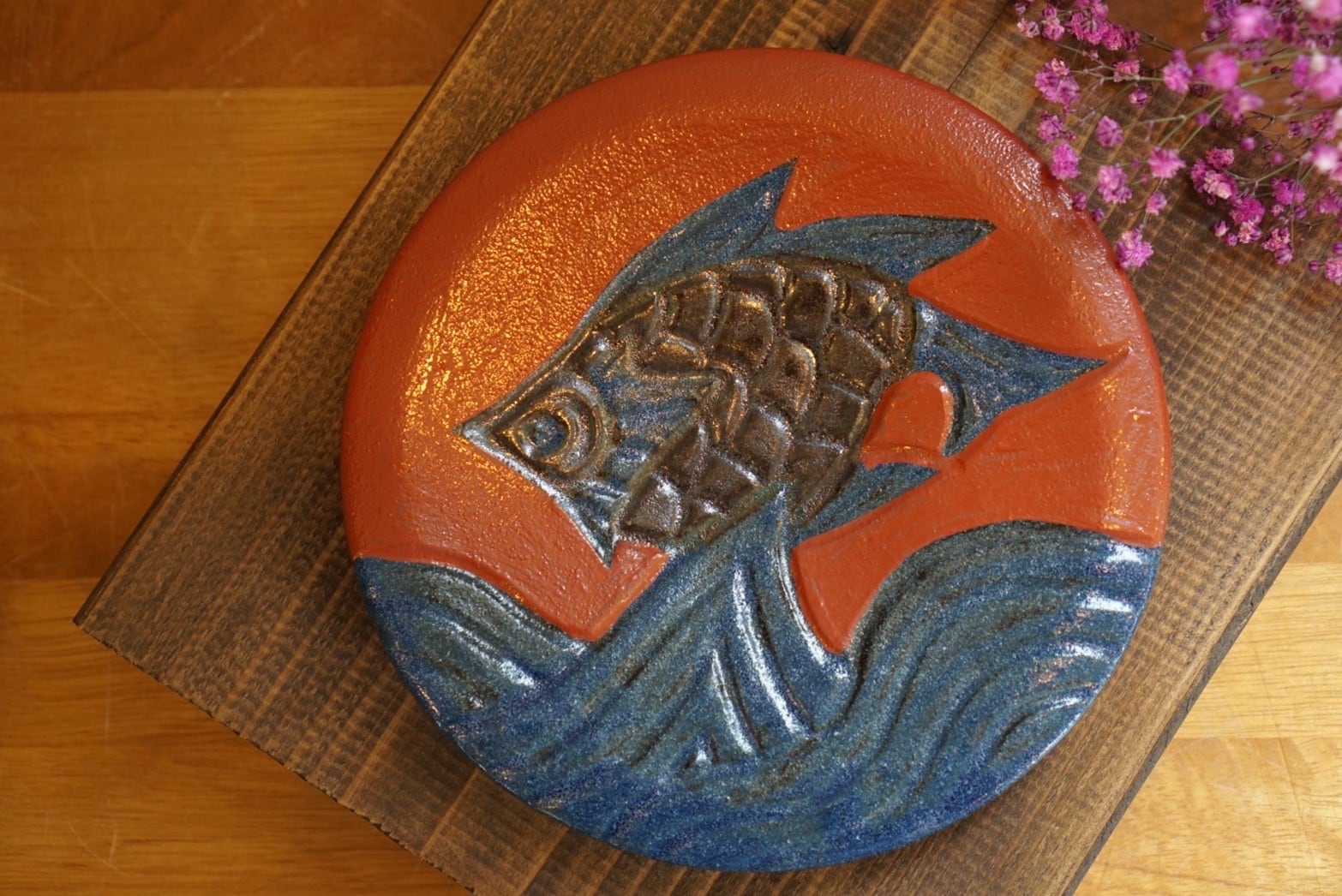魚模様には、子供をたくさん産む魚は子孫繁栄という意味が込められております。