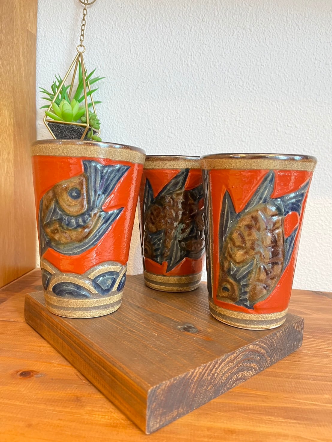 赤絵魚紋 ビアカップ(大) 3種類展開